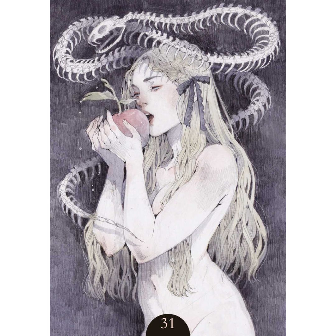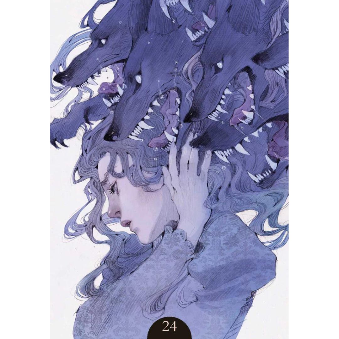 Uno de los mayores talentos emergentes del panorama artístico italiano produce un Oráculo que no tiene igual. Las figuras del lobo y la niña se entrelazan en una danza subliminal en la que el amor y la muerte se conectan a través de los poderosos temas de la pasión y la sensualidad.