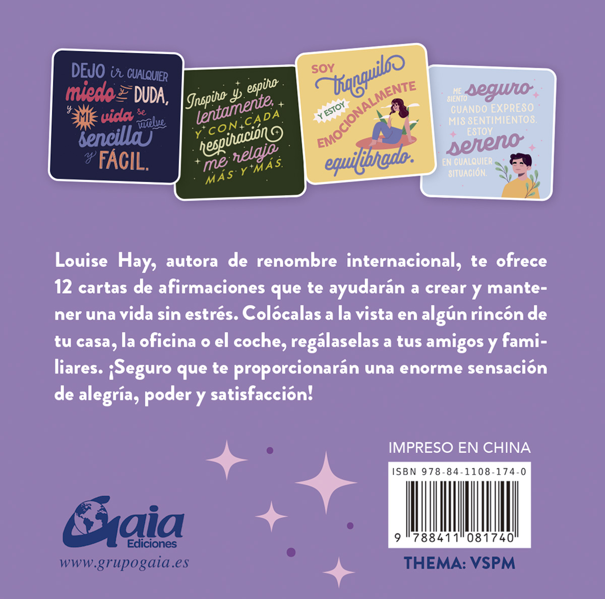 Louise Hay, autora de renombre internacional, te ofrece 12 cartas de afirmaciones que te ayudarán a crear y mantener una vida sin estrés. Colócalas a la vista en algún rincón de tu casa, la oficina o el coche, regálaselas a tus amigos y familiares. ¡Seguro que te proporcionarán una enorme sensación de alegría, poder y satisfacción!