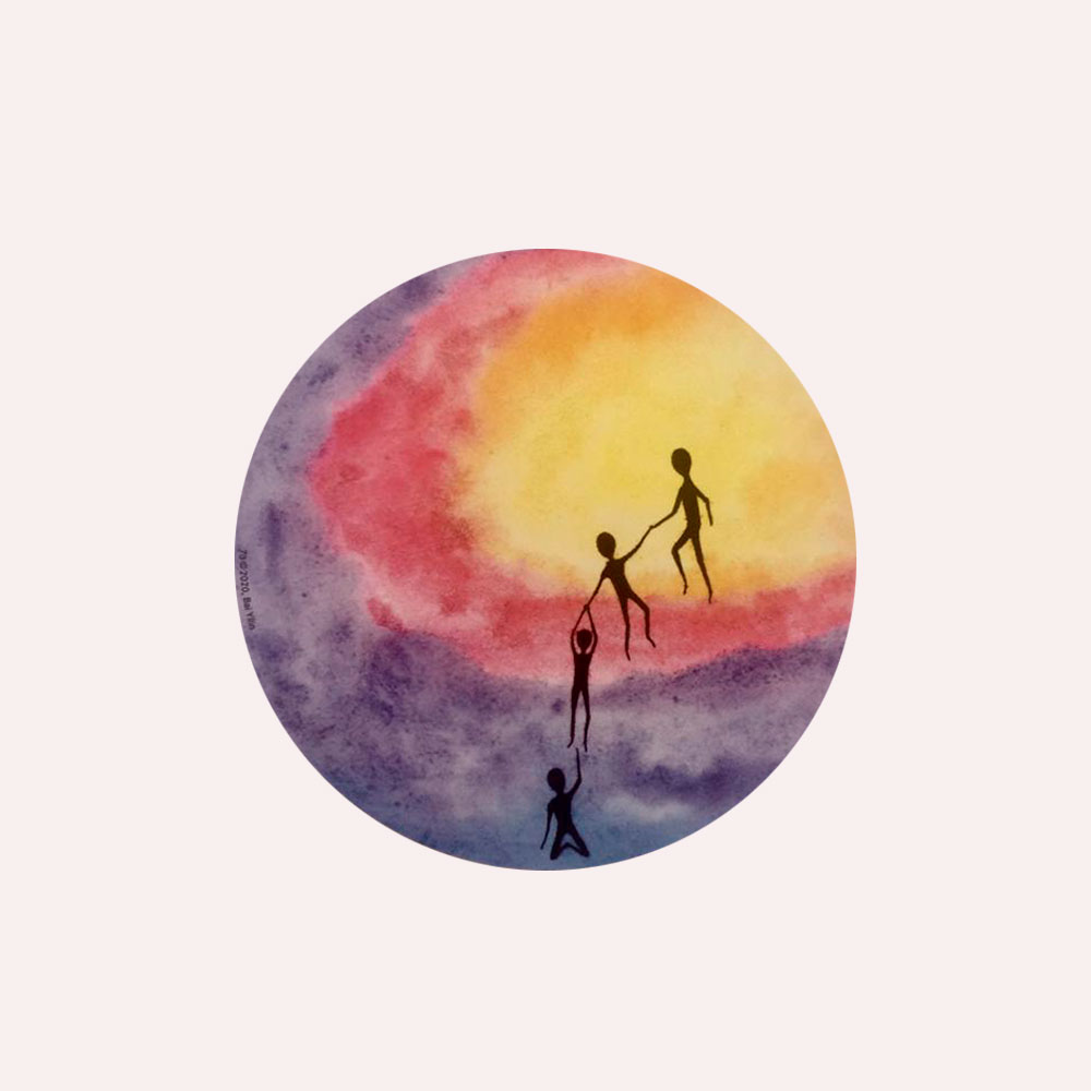 Las cartas INUK presentan un compañero en juego a las preguntas existenciales: “¿Quién soy yo?” “¿Qué me hace ser cómo soy?” Cada tarjeta circular de 88 mm es una representación metafórica de una situación en la que cualquiera de nosotros podría encontrarse. Los jugadores interpretan las imágenes atribuyendo sentimientos, estados de ánimo y acciones, y así se convierten en participantes de las escenas. Simultáneamente pueden echar un vistazo a su propio estado interno actual. La artista Bai Yilin ha enriquecido el género OH con sus 88 pinturas sobre el tema del autodescubrimiento y la autodeterminación. Las 10 tarjetas recortadas funcionan como ventanas, cerraduras o lupa para afectar/cambiar nuestra perspectiva. Una tarjeta INUK es sorprendente si la colocas en una palabra OH.