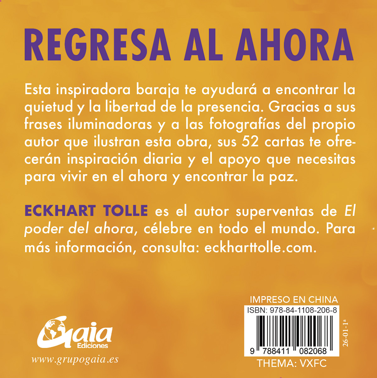 Esta baraja recoge la sabiduría de Eckhart Tolle en 50 cartas llenas de inspiración. Las citas de estas cartas han sido especialmente seleccionadas por el propio autor para poner en práctica el Poder del Ahora de la manera más sencilla y accesible. Extrae una carta diariamente y reflexiona sobre ella durante la jornada, o bien saca una carta al azar cada vez que te surja una duda o una pregunta y necesites inspiración.