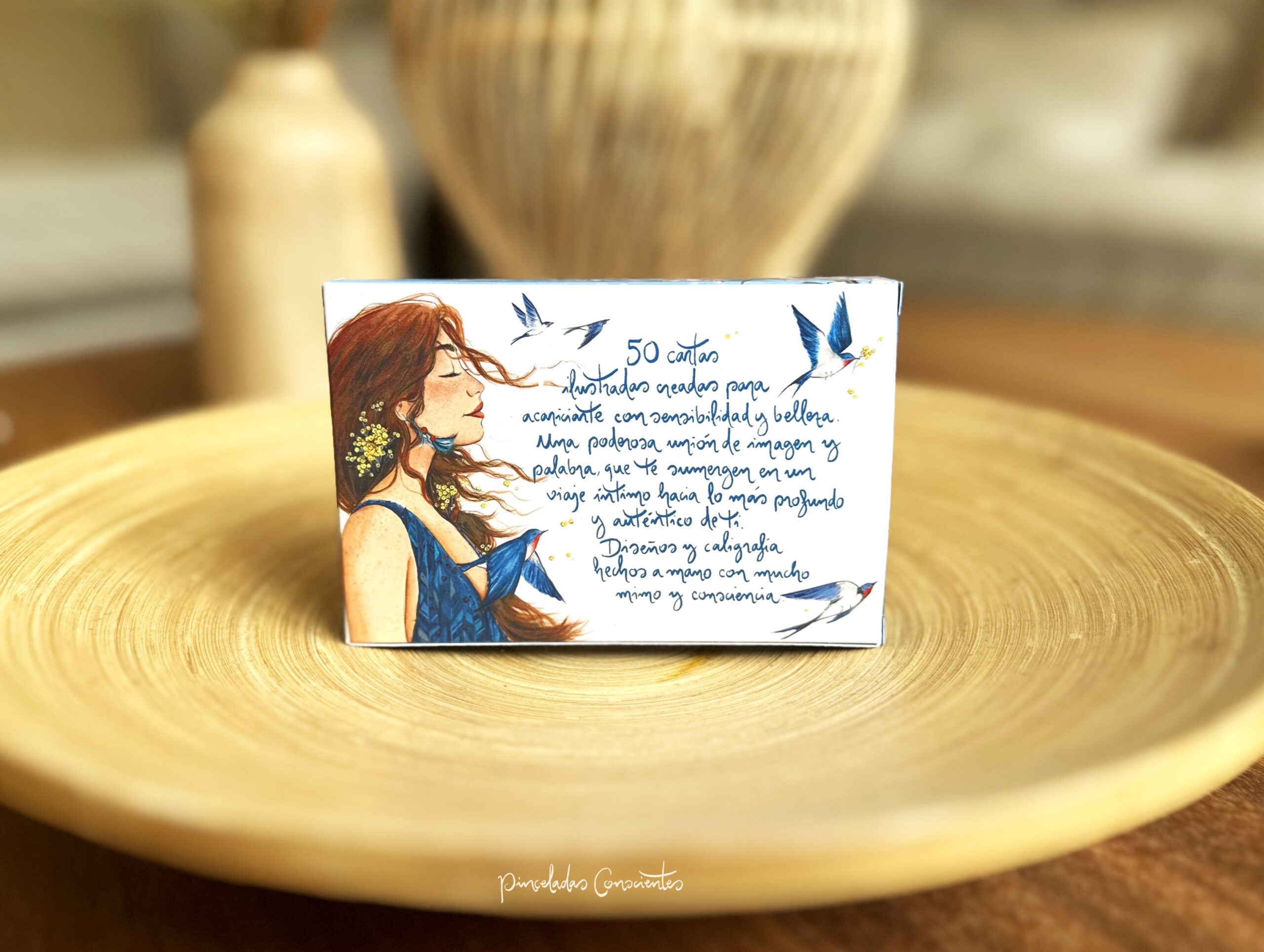 Nueva colección de 50 cartas de 12×8 cm. metida dentro de su estuche. Cada carta está compuesta de una ilustración pintada a mano, y una cita que nos invite a la reflexión.