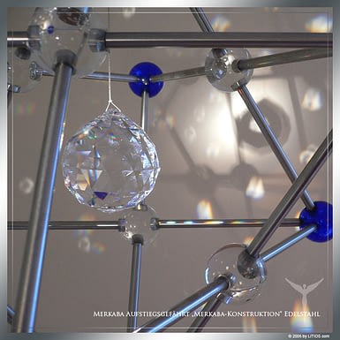 Una valiosa construcción basada en la geometría sagrada que ha sido trabajada con mucho amor y alegría en cristal y varillas doradas formando un MerKaBa. En medio cuelga libremente como corazón una esfera de cristal claro facetada Con iniciación y energización diamantina para la activación de su MerKaBa de luz.