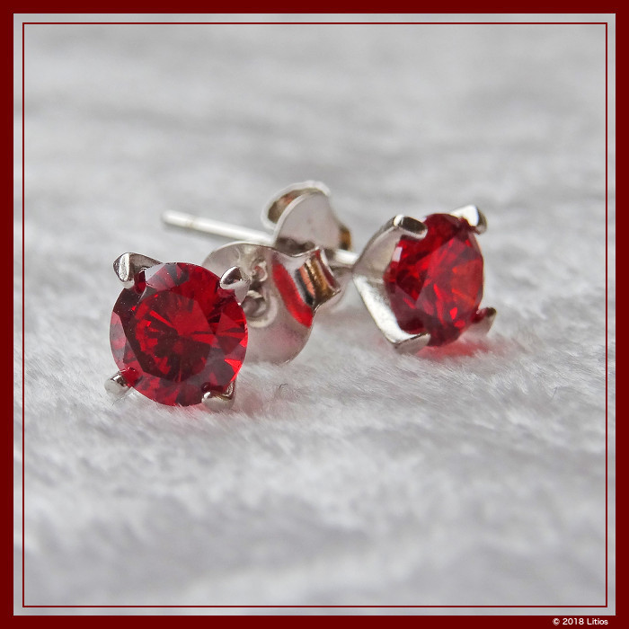 1 par de pendientes de plata 925 de alta calidad cada uno con un diamante de rubí zirconia,corte fino, facetado, engastado en plata filigrana y brillante
