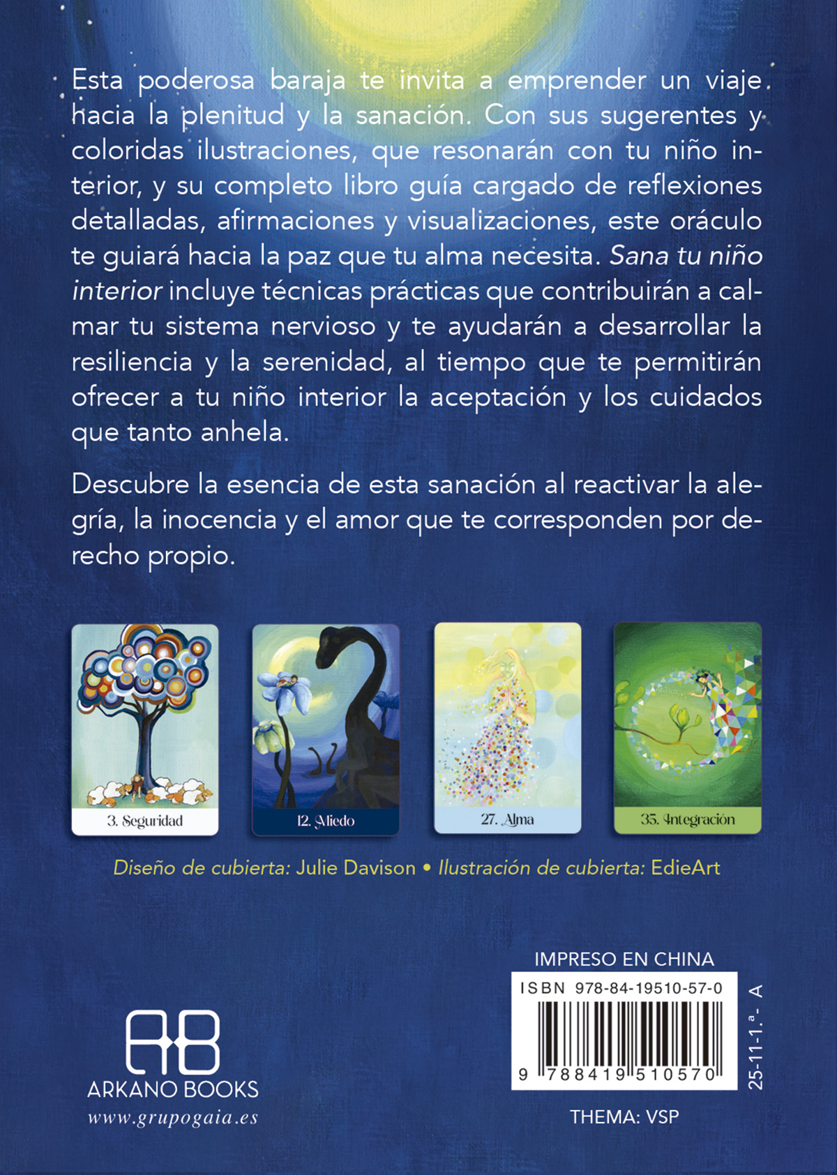 Esta poderosa baraja te invita a emprender un viaje hacia la plenitud y la sanación. Con sus sugerentes y coloridas ilustraciones, que resonarán con tu niño interior, y su completo libro guía cargado de reflexiones detalladas, afirmaciones y visualizaciones, este oráculo te guiará hacia la paz que tu alma necesita. Sana tu niño interior incluye técnicas prácticas que contribuirán a calmar tu sistema nervioso y te ayudarán a desarrollar la resiliencia y la serenidad, al tiempo que te permitirán ofrecer a tu niño interior la aceptación y los cuidados que tanto anhela.