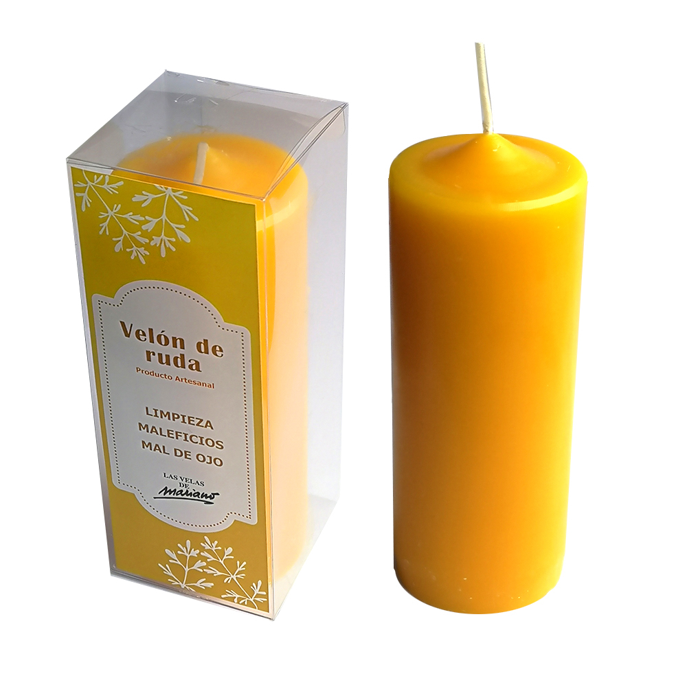 Velón fabricado artesanalmente con las mejores ceras. Presentado en caja transparente de plástico.