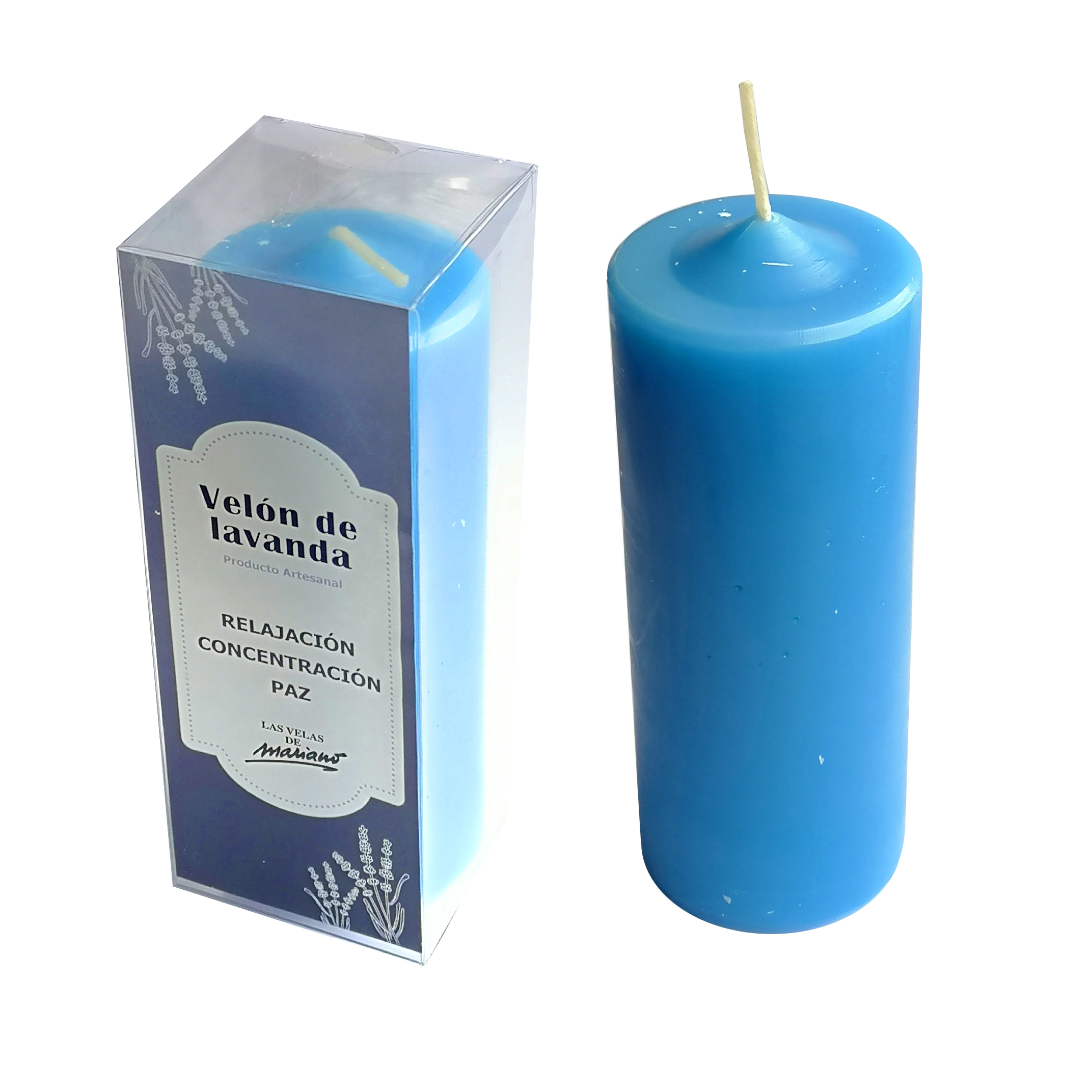 Velón fabricado artesanalmente con las mejores ceras. Presentado en caja transparente de plástico. Tamaño: 135x55mm