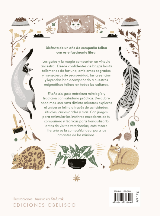 El año del gato entrelaza mitología y tradición con sabiduría práctica. Descubre cada mes una raza distinta mientras exploras el universo felino a través de actividades, rituales, curiosidades y más. Con juegos para estimular los instintos cazadores de tu compañero y técnicas para tranquilizarlo antes de visitas veterinarias, este tesoro literario es la compañía ideal para los amantes de los mininos.