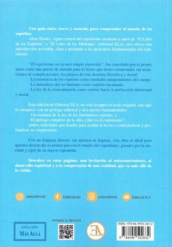 Esta edición de Editorial ELA, no solo recupera el texto original, sino que lo enriquece con un prólogo editorial y dos anexos fundamentales: un resumen de la ley de los fenómenos espíritas, y el prólogo completo de la obra ¿Qué es el espiritismo?, ambos elaborados por Kardec para ayudar al lector a contextualizar y profundizar su comprensión. Con un lenguaje directo, sin adornos ni dogmas, esta obra es ideal para quienes desean dar su primer paso en el estudio del espiritismo, guiados por la claridad y rigor de su mayor exponente.