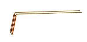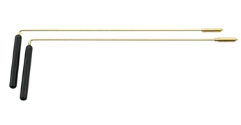Estas varilla de ángulo tienen como mango un cilindro metálico que facilita el movimiento dando más sensibilidad. 34 cm Son de metal y poseen dos brazos metálicos formando un ángulo de 90 grados, el brazo corto tiene un mango que impide el contacto directo con las manos y facilita el movimiento. Es necesario dominar el arte de la radiestesia y poseer conocimientos para saber qué se esta buscando y evitar la confusión al recibir respuestas ya que la varilla móvil es muy sensible.