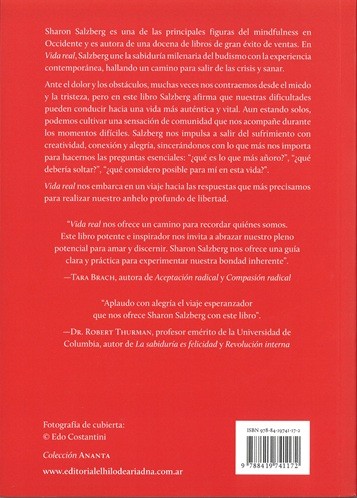 Sharon Salzberg es una de las principales figuras del mindfulness en Occidente y es autora de una docena de libros de gran éxito de ventas. En Vida real, Salzberg une la sabiduría milenaria del budismo con la experiencia contemporánea, hallando un camino para salir de la crisis y sanar.